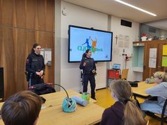 - Ebenfalls in den 3. Klassen findet der Workshop mit der Polizei "Click und Check" statt. Hier werden die Schüler über Strafmündigkeit und die Fallen des Internets aufgeklärt.