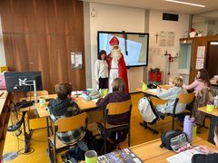 So eine Überraschung. Während des Mathematikunterrichtsss klopfte es an der Tür und der Heilige Nikolaus besuchte Frau Mayer. Ob sie ihm ein kleines Gedicht aufgesagt hat? Das bleibt ein gut gehütetes Geheimnis.