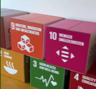 Unsere neuen SDG-Würfel sind nicht nur farbenfrohe Hingucker, sondern auch eine schöne Erinnerung an die 17 Nachhaltigkeitsziele.